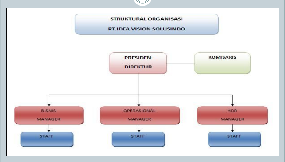 Visi Didalam menjalankan usaha menjalankan layanan, PT. IDEA VISION SOLUSINDO memberikan solusi dalam bidang teknologi,sistem informasi dan pengelolaan sumber daya manusia yang terbaik. Untuk itu kepercayaan dan prestasi menjadi kunci utama untuk sukses bersama. PT. IDEA Vision Solusindo akan menjadi perusahaan spesialisasi penyedia teknologi sistem informasi dan penyedia sumber daya manusia yang paling terpercaya dan diandalkan. Kami yakin dengan kualifikasi team yang dimiliki, dan prinsip kemitraan yang kami junjung tinggi, dimana kepuasan kebutuhan mitra usaha adalah point of view bagi kami, karena itu kami yakin akan dapat membawa perusahaan anda untuk bersaing dalam skala nasional maupun internasional. Semua ini akan didapat dari hasil kerja keras dan prestasi yang selalu kami tingkatkan demi kenyamanan perusahaan anda.